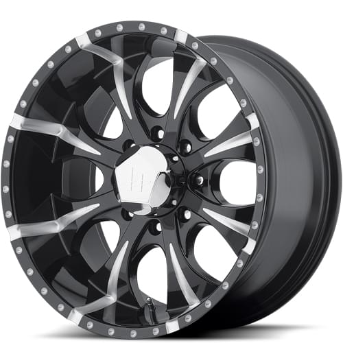 Gloss Black Milled Helo Maxx 8 (Series HE791) Wheels. One Piece Aluminum.