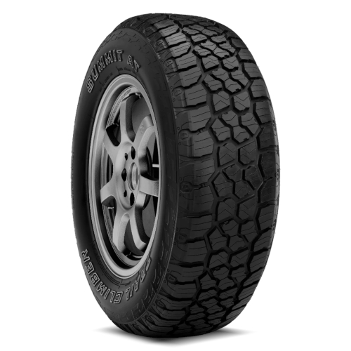 The Summit Trail Climber AT tire at ExtremeCustoms.com is an all terrain all season tire built for trucks and SUVs that delivers rugged offroad traction balanced highway performance and long tread life. The Summit Trail Climber AT tire features aggressive tread blocks reinforced sidewalls and self cleaning grooves that provide dependable grip stability and control on dirt gravel mud and pavement.