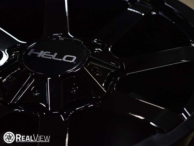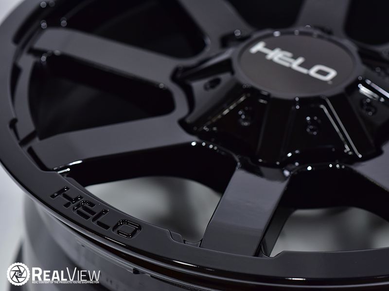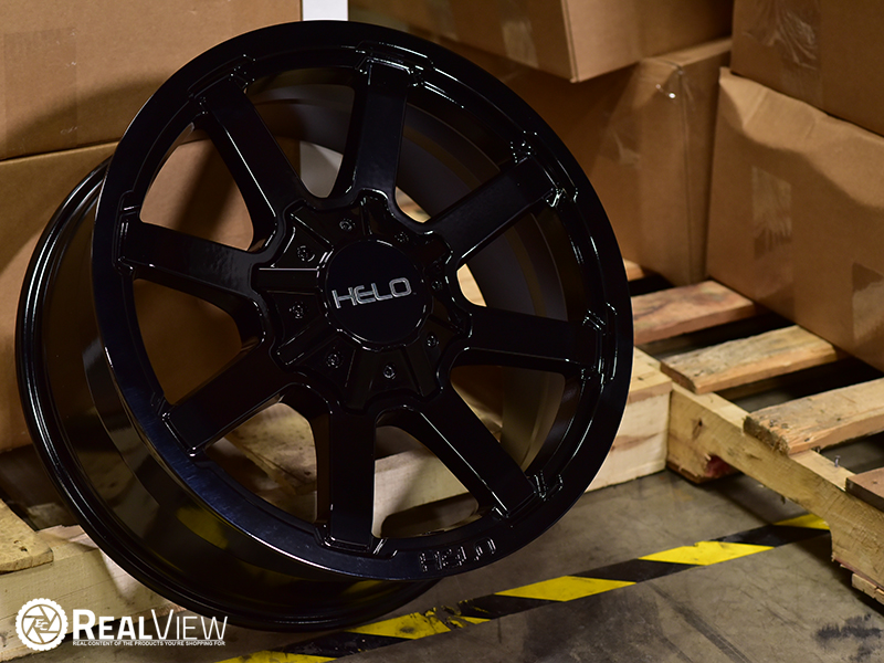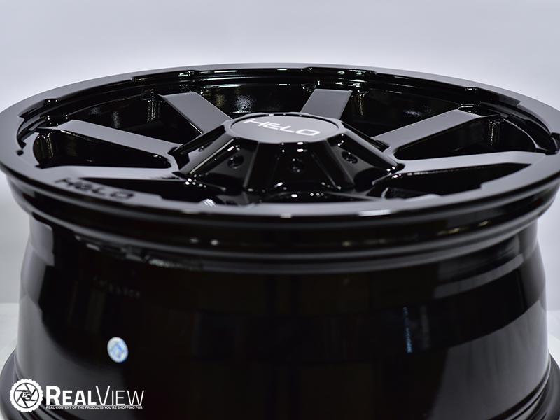 Gloss Black Helo HE909 Black (Series HE909). One Piece Aluminum. Open Lugs.