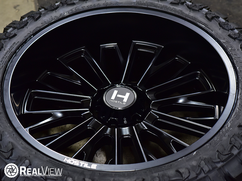 Blade Cut (Black W/ Machined) Hostile Fury 6 Lug Wheel (Series H114B). One Piece Aluminum. Closed Lugs.