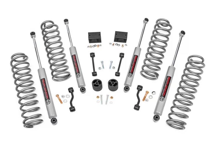 Jeeps JL Wrangler model is an impressive overhaul over previous designs, with modern appointments and considerably more power. Put the finishing touch on your new JL with enough clearance to easily run 35in tires with Rough Countrys 2.5in Suspension Lift! This easy-to-install kit offers a total transformation in the look of your Jeep. Instantly gain an aggressive look and commanding stance that will truly set your JL apart from the pack, while retaining a smooth factory-like ride. Rough Countrys 2.5in Suspension Lift includes front and rear coil springs with a linear coil rate that promotes incredible handling while retaining more lift height under load than other designs. For an impressive ride quality both on and off-road, this kit also includes Rough Countrys nitrogen-charged N3 shocks. These 10-stage variable valving shocks feature a durable 18mm spring loaded piston rod, huge 54mm shock body, and reinforced seals for a long lifespan of smooth performance.