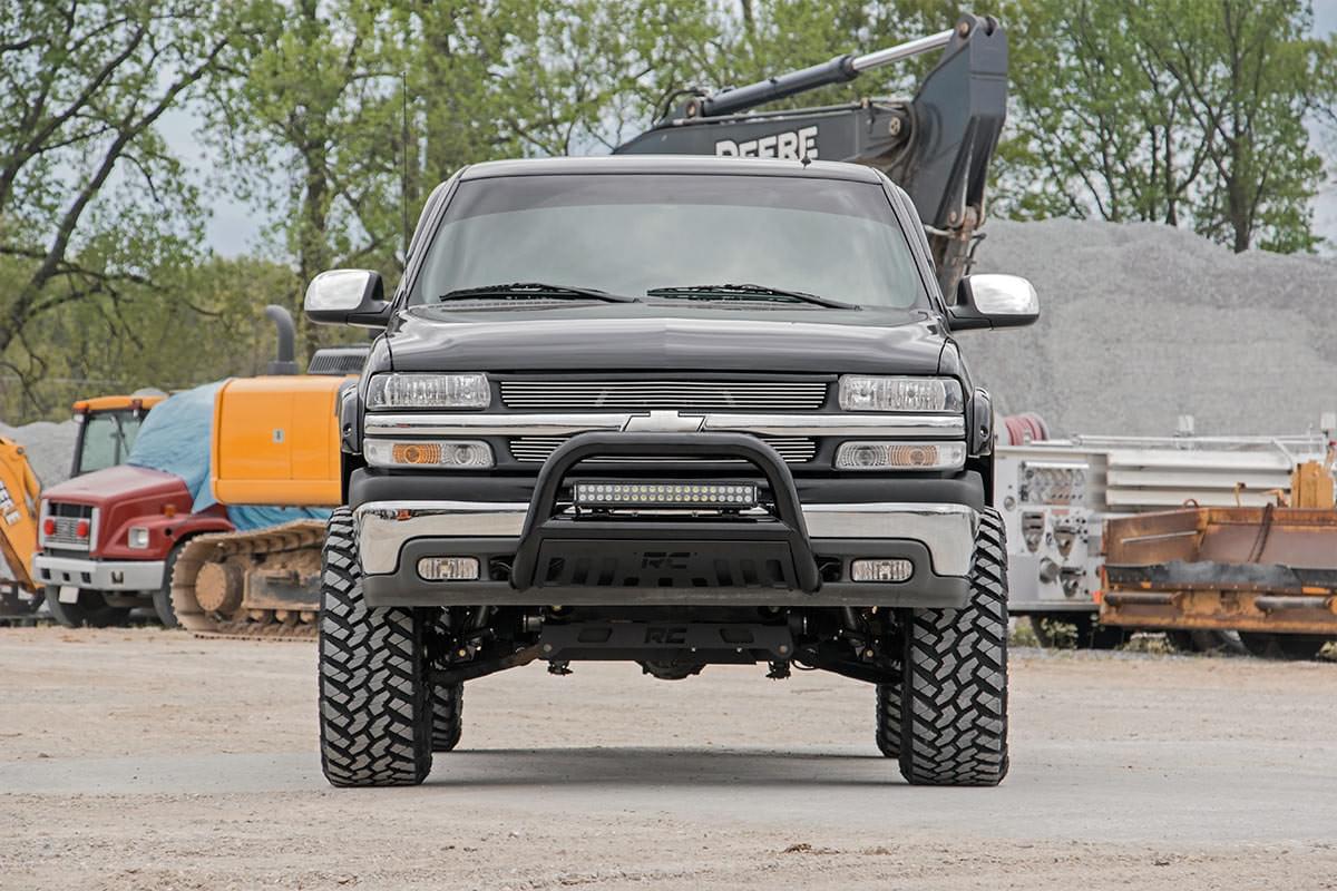 Gain greater clearance: better handling: and the cleanest looking 6-inch lift available! A set of lifted front knuckles and 5-inch rear fabricated: anti-wrap blocks allow your 1500 to run up to 35-inch tires: while a full set of high clearance drop crossmembers: differential drop brackets and non torsion bar drop brackets keep everything tucked: hidden: and at optimum angles. This fully loaded suspension lift also includes a set of (4) N3 Shocks: front CV spacers: sway-bar links: and a protective skid plate to give you everything you need to get rolling in one of our best kits.
