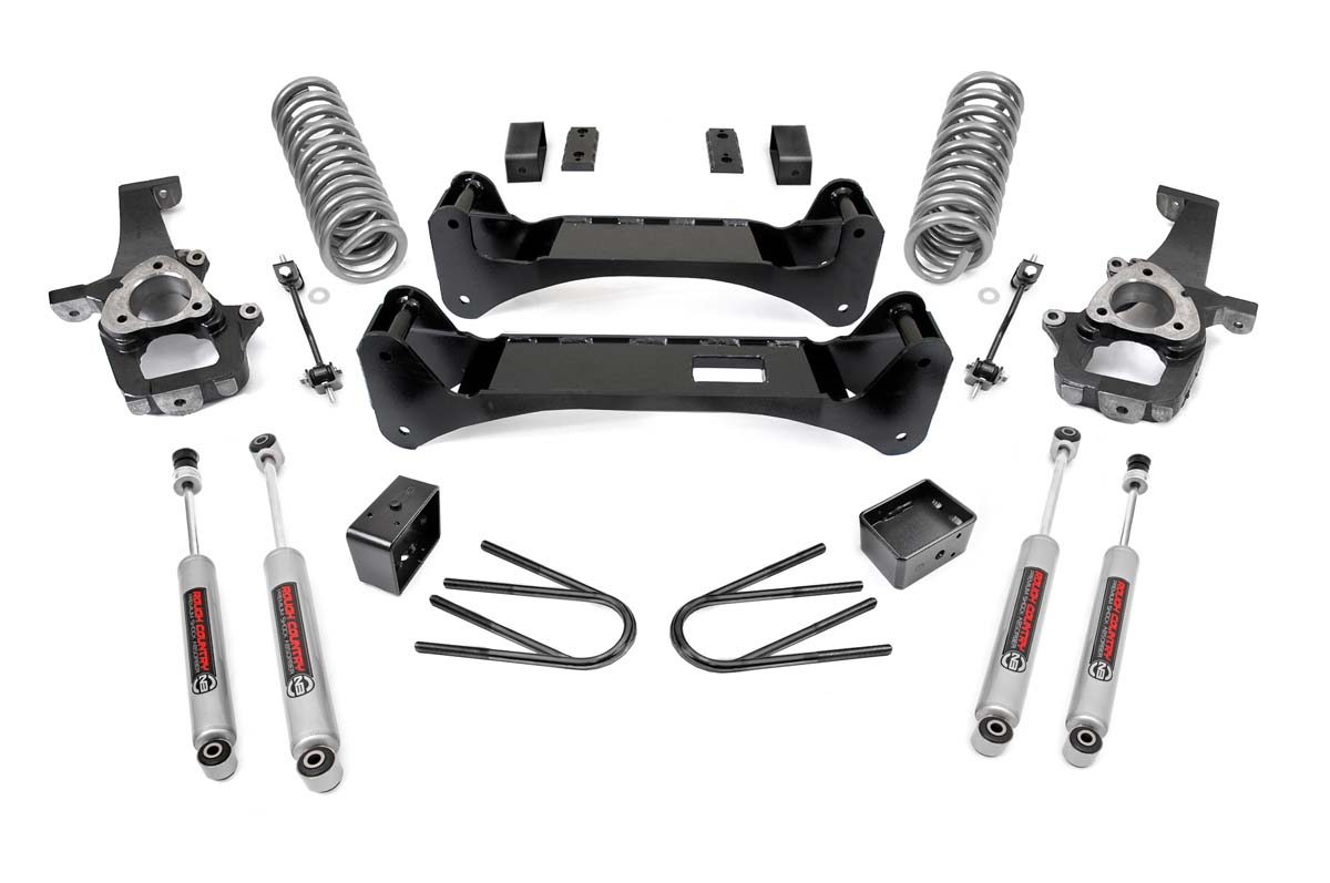 Rough Country has designed this system for a quick and easy installation and developed to be professionally installed within 6-8 hours. It is a 100% bolt-on application requiring no cutting no welding no drilling and no exhaust modifications to install. This system requires aftermarket wheels with a minimum of 4.5-inch backspacing.