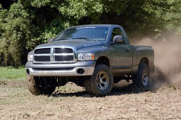 This new Dodge suspension is designed around raised driver and passenger side one-piece quality cast CNC machined knuckles which maintain factory front-end alignment and optimal steering geometry. Fully welded front and rear cross members constructed from 1/2-inch laser cut steel keep the suspension rigid and aligned as well as provide improved strength and stability off-road. New longer anti sway-bar links with factory type ends eliminate preload and bind.